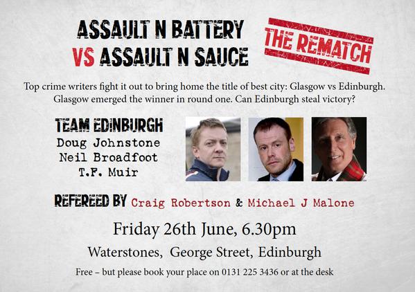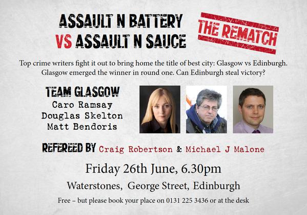 “Top crime writers fight it out to bring home the title of best city: Glasgow vs Edinburgh” – Friday 26th June, Waterstones Edinburgh