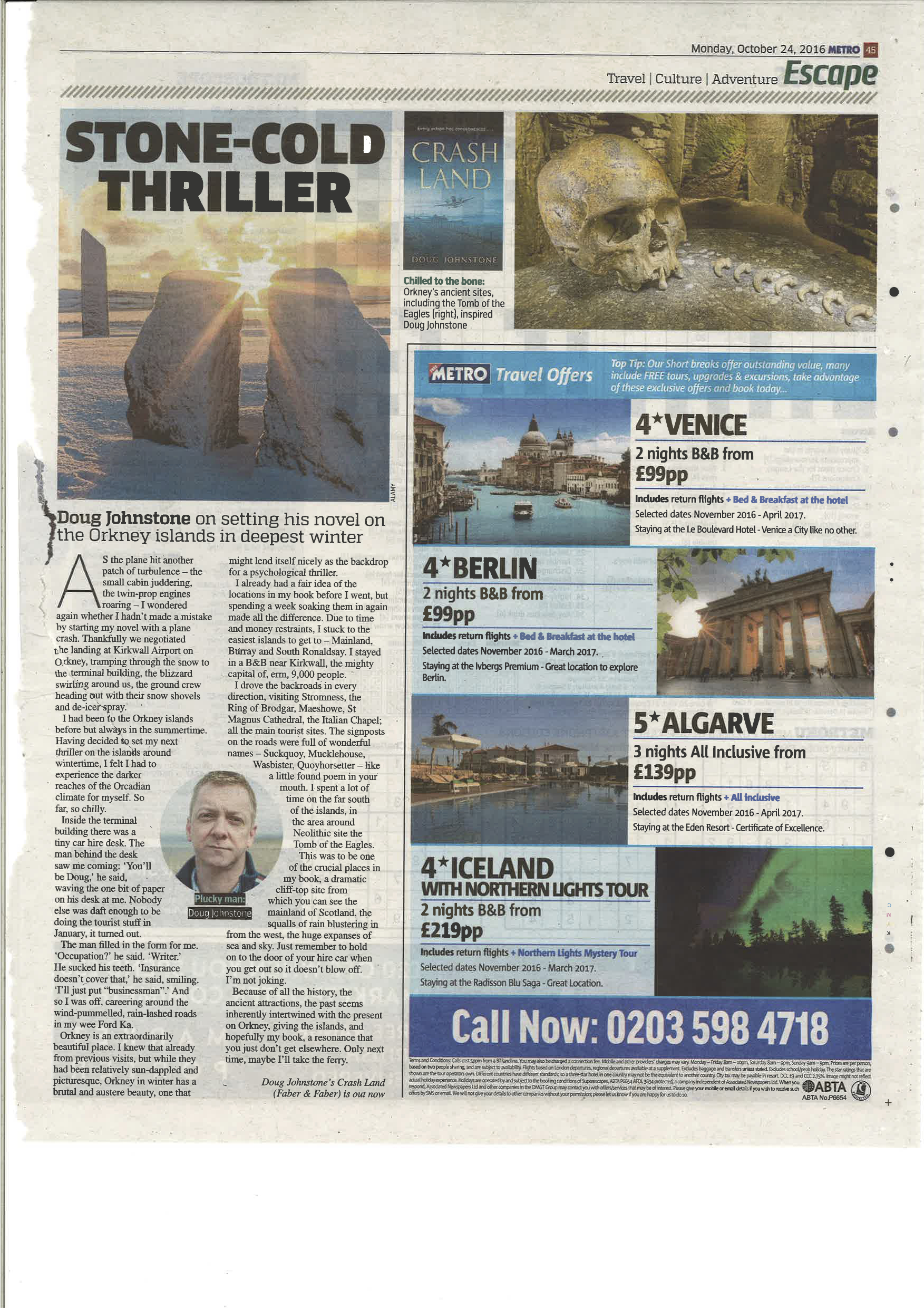 Here’s a travel thing I wrote for Metro about researching the new book in Orkney: