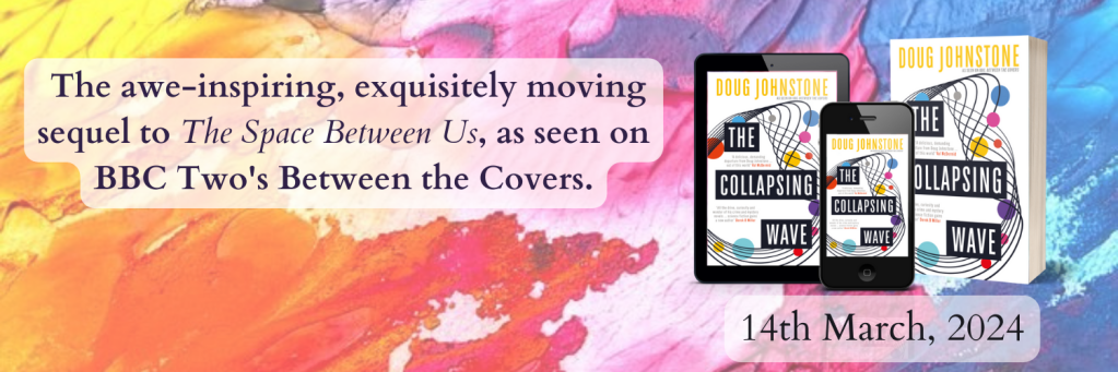 My seventeenth novel, The Collapsing Wave, is out THREE WEEKS TODAY, published by the wonderful Orenda Books. It’s the sequel to last year’s The Space Between Us, and I can’t wait for it to be out in the world. Check out the amazing cover and blurb below.