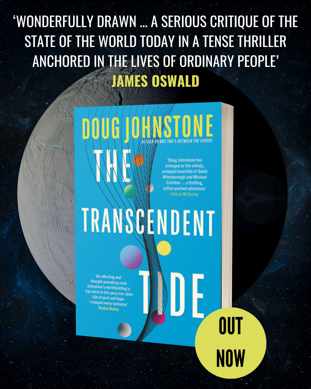 The Transcendent Tide – the third instalment of my Enceladons trilogy – is out today, and I can’t wait for folk to read it. It’s definitely my most ambitious novel to date in a number of ways, and hopefully readers will agree that I’ve honoured the first two books in the series and given the characters a fitting ending.