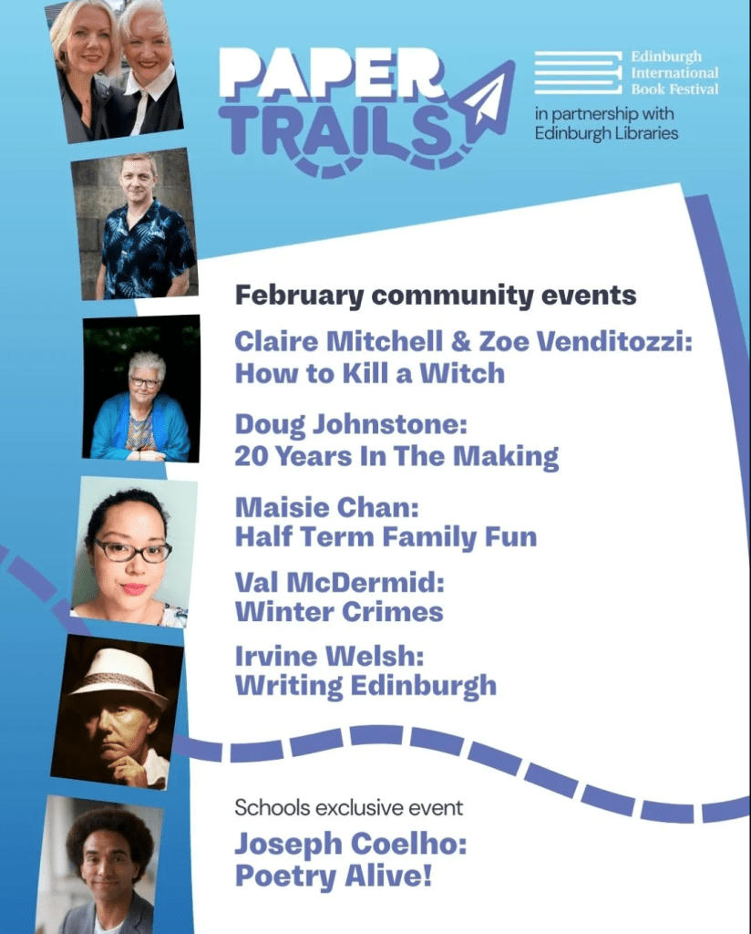 The good people of Edinburgh International Book Festival are running Paper Trails, a winter mini-book fest at Muirhouse Library, and I’m delighted to be appearing on Wednesday 11th February, chatting to Nyla Ahmad about twenty years of sweary nonsense. (Warning, this even will probably also contain vaguely relevant live music.) It’s FREE but ticketed, go here to sort yourself out.