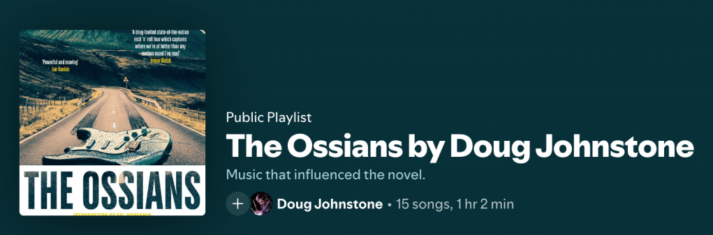 So when I first submitted the novel to my editor, it had lyric quotes from other bands at the start of each chapter. My editor helpfully pointed out that this would cost literally thousands of pounds to get clearance, so I wrote some Ossians lyrics instead.