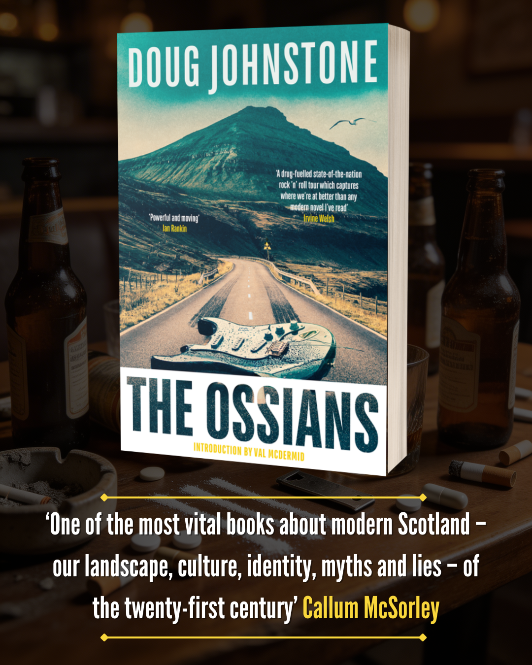 Raw, darkly funny and wild with energy, The Ossians is a gloriously anarchic story of rock’n’roll obsession, national identity and self-destruction ― and what it means to belong: in a band, in a country, in a life unravelling at speed.
