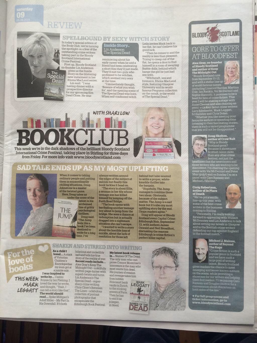 I was interviewed by The Edinburgh Evening News. Sandra Dick, who interviewed me, was very interested in the fact my main character was a murderous reporter for, ahem, The Edinburgh Evening Standard. Hmmm.